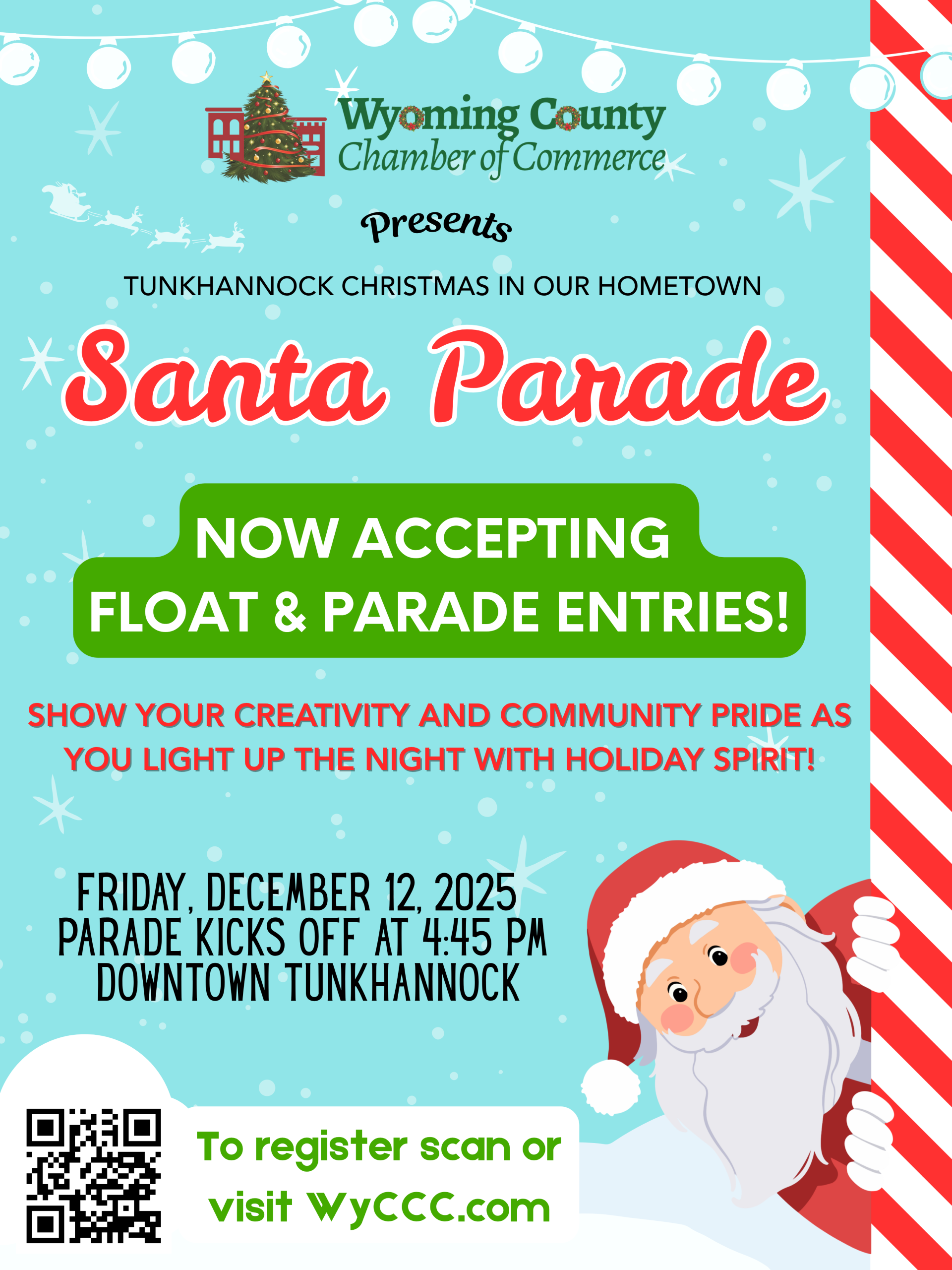 Friday, December 12th, 2025 Downtown Tunkhannock FreeTunkhannock Christmas in Our Hometown Santa Parade